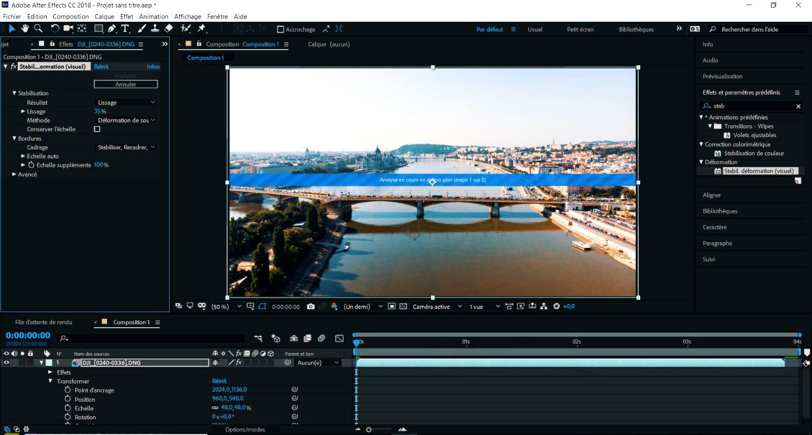 - Stabilisez ensuite la vidéo en appliquant l’effet « Stabilisation de déformation »