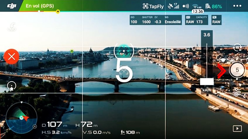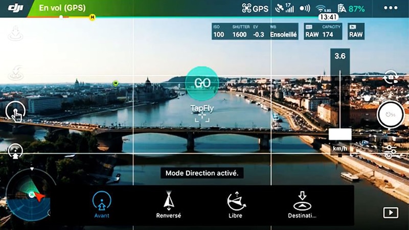 Comme je vous le disais plus haut, l’hyperlapse est un rassemblement de photos qui mises bout à bout donnent une vidéo. Pour pouvoir prendre ces photos tout en déplaçant le drone, il faut combiner plusieurs fonctionnalités de ce dernier.