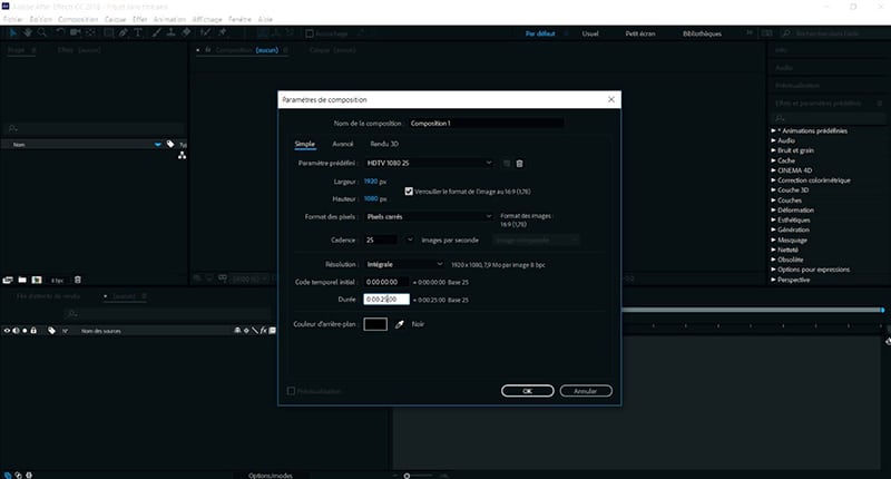 - Cliquez sur « nouvelle composition »