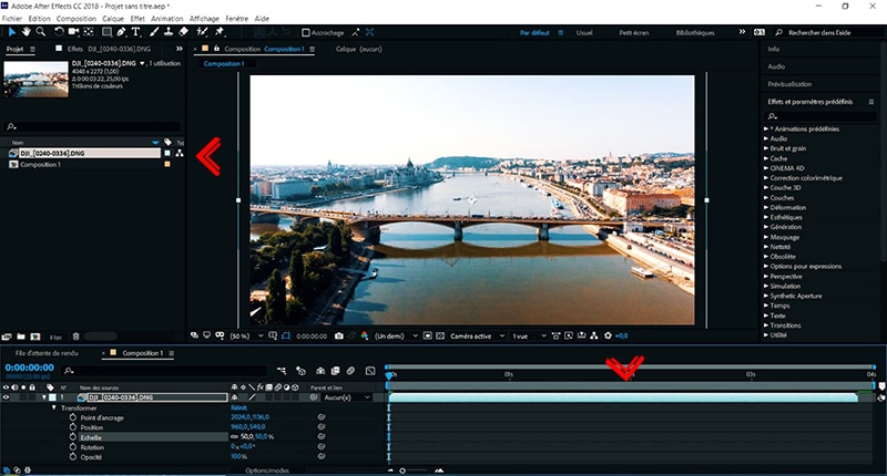 - Placez la séquence de photos importée sur la composition.