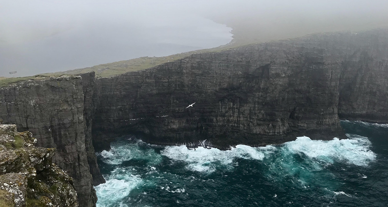 On y accède avec un bateau via le village de Vestmanna. Le bateau vous amène aux pieds de ces falaises qui surplombent l’océan depuis leurs 600/700 mètres de hauteur ! Le spectacle, auquel se mêlent parfois le brouillard et notamment les centaines d’oiseaux est bluffant !