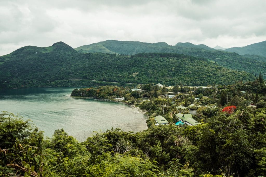 En fin de journée, je vous conseille de prendre un peu de hauteur. Les points de vue du domaine de Déva offrent une très belle lecture du lagon et des reliefs environnants, notamment au moment du coucher de soleil. La lumière de fin de journée y est particulièrement douce, parfaite pour terminer le voyage sur une note contemplative.