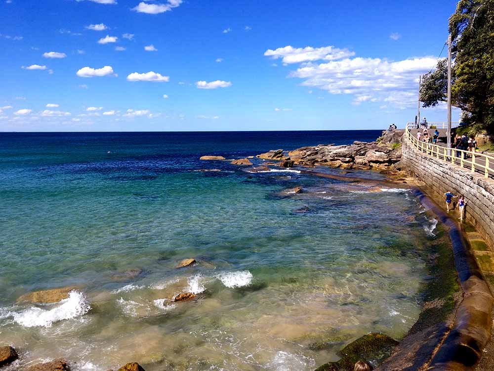 Beaucoup de personnes vous parleront de Bondi Beach comme LA plage à visiter à tout prix à Sydney, et pourtant j’ai préféré Manly Beach. Pourquoi? Déjà pour son trajet splendide, puisque le bateau part de Circular Quay et passe devant l’Opera House, le jardin botanique, le quartier d’affaires et ses tours imposantes, etc. Le trajet prend environ une demi heure et coûte moins d’une dizaine de dollars. Je vous conseille avant tout de faire la balade qui longe la plage (de mémoire la « Manly Scenic Walklway« ). En plus, il y a une rue très sympa avant d’arriver sur la plage ou vous trouverez de très nombreux restaurants/magasins/bars. 🙂