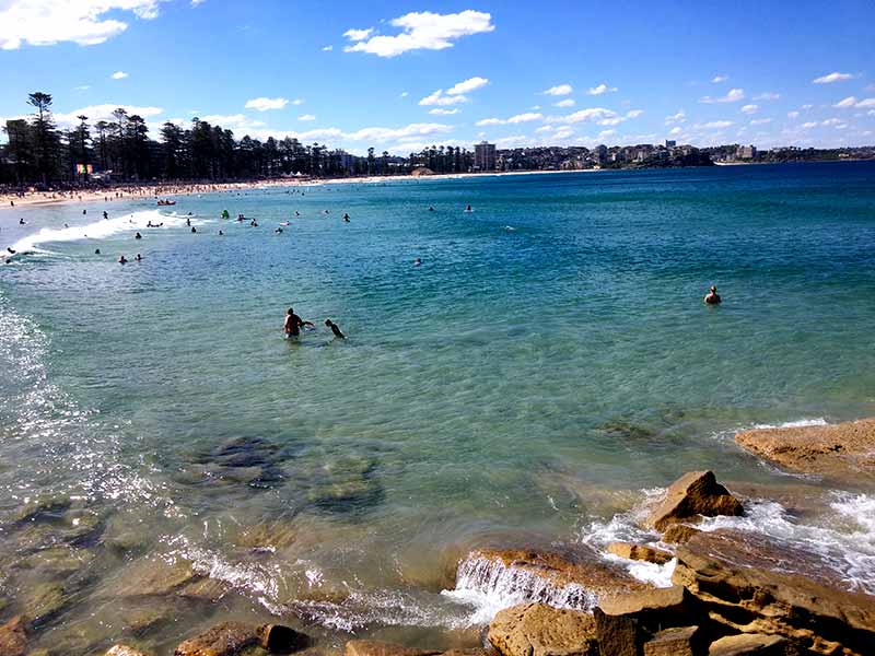 Beaucoup de personnes vous parleront de Bondi Beach comme LA plage à visiter à tout prix à Sydney, et pourtant j’ai préféré Manly Beach. Pourquoi? Déjà pour son trajet splendide, puisque le bateau part de Circular Quay et passe devant l’Opera House, le jardin botanique, le quartier d’affaires et ses tours imposantes, etc. Le trajet prend environ une demi heure et coûte moins d’une dizaine de dollars. Je vous conseille avant tout de faire la balade qui longe la plage (de mémoire la « Manly Scenic Walklway« ). En plus, il y a une rue très sympa avant d’arriver sur la plage ou vous trouverez de très nombreux restaurants/magasins/bars. 🙂