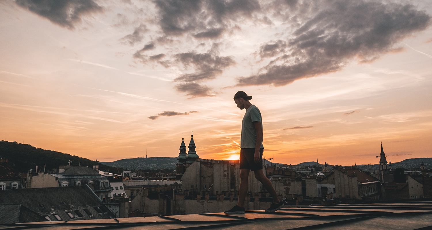 un coucher de soleil sur les toits à Budapest