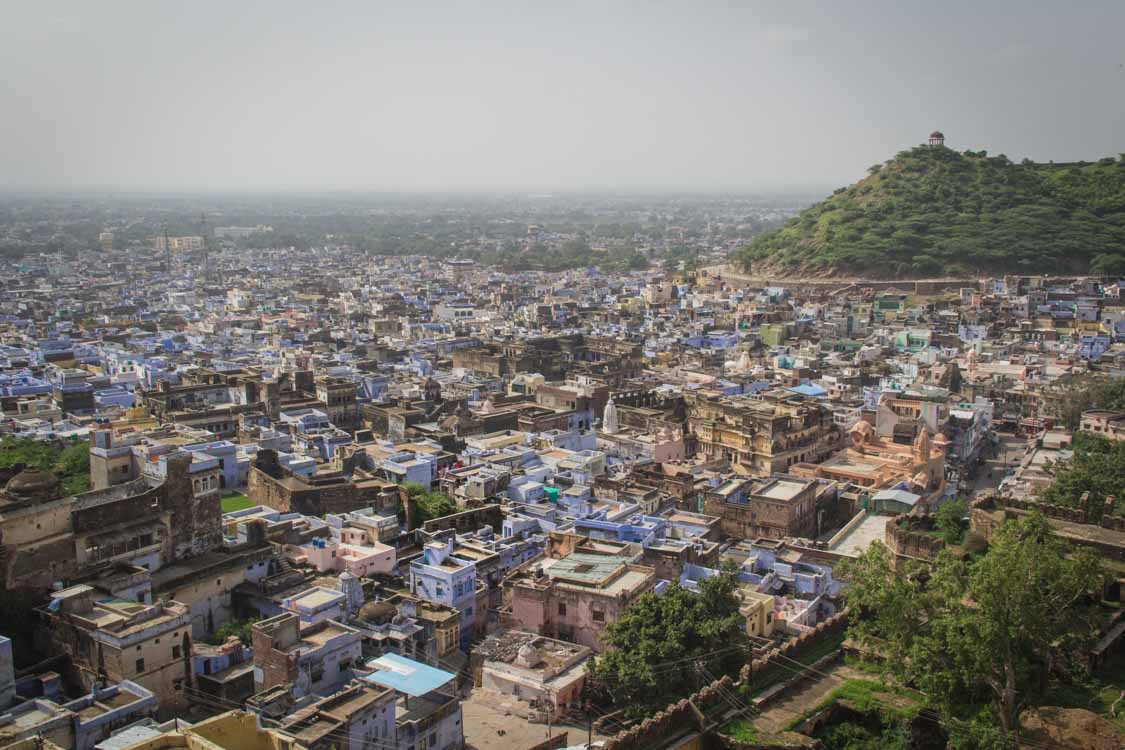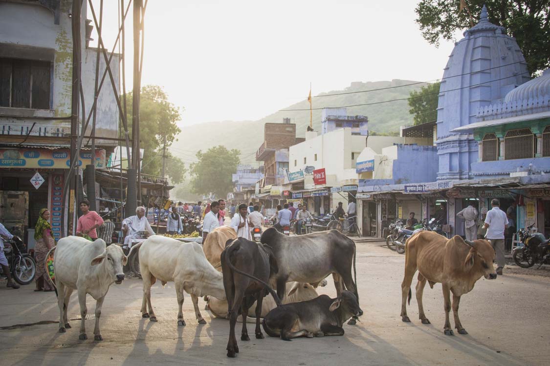 Que dire d’Udaipur? La «Venise Indienne» porte bien son surnom. Cette ville est charmante. La vue de notre hôtel sur le lac Pichola est splendide. Une fois là-bas, je comprends pourquoi John Glen a choisi cette ville pour y réaliser Octopussy, 13ème opus de la saga James Bond. Depuis l’île de Jag Mandir, j’admire le somptueux City Palace et le fameux et réputé Lake Palace Hotel (je comprends aussi vite pourquoi Roger Moore a décidé d’y passer ses nuits !). Sur le lac, la tranquillité règne. C’est un des rares moments de calme, sans klaxon de tous les côtés. Le soir nous avons droit à un spectacle de danse rajasthine. Très bon moment pour se divertir avec la musique locale.Après avoir quitté Udaipur, nous arrivons à Bundi en fin d’après-midi. Cette ville est connue pour avoir été la ville où Rudyard Kipling a écrit son roman Le Livre de la jungle. Nous profitons de la fraîcheur de fin de journée pour aller, comme à Jodhpur, explorer la vieille ville et son marché. J’adore Bundi. Se balader dans ses rues est un plaisir. Nous croisons les enfants du village, étonnés de nous voir, nous découvrons l’ambiance du marché. Les passants se mêlent aux motards qui se mêlent aux étals qui se mêlent aux vaches… et BOUM ! Nous venons d’assister au premier accident depuis notre arrivée (fallait bien que ça arrive un jour avec ce code de la route inexistant !). Un jeune en scooter a renversé un vieux monsieur en vélo ! Les tons montent, la tension également mais les habitants calment vite le jeu. Plus de peur que de mal pour le papi ! Nous rentrons vite à l’hôtel admirer les belles lumières du coucher de soleil. Du rooftop, nous voyons les singes se promener sur les toits des maisons avec derrière la belle lumière rose. C’est superbe ! De l’autre côté, nous admirons l’impressionnant Fort de Taragarh construit sur la colline. Nous y monterons demain.Le Fort est immense et incrusté dans la roche. Il est délabré, sa végétation l’envahit. Ça lui donne un charme que les autres n’ont pas. Il est impressionnant. Pour y accéder totalement, il va falloir grimper. Un peu de courage car il promet de grandes choses ! Ici la nature domine. Les seuls habitants sont des chauves-souris et quelques écureuils qui viennent prendre la pose devant mon appareil. Nous parcourons le fort jusqu’à arriver sur une petite terrasse… C’est à ce moment précis que l’expression «Incredible India!» prend tout son sens. C’est magnifique. Le fort surplombe la ville de Bundi. La vue est dingue ! C’est un moment magique, sûrement un des meilleurs de mon voyage. Je suis vraiment heureux d’être là, découvrant l’Inde dans tous ses états. MERCI! Merci de m’offrir cette chance d’être ici, debout, devant ce décor splendide d’une ville perdue au milieu de ce magnifique «Pays des rois». Bundi est une superbe découverte, la ville est géniale et son fort majestueux. Malheureusement je dois la quitter et me diriger vers Jaipur, la capitale du Rajasthan.Entre les deux, nous sommes passés par Pushkar, je ne vous parle pas de cette ville et de son lac sacré car nous en avons surtout profité pour se reposer le temps d’une après-midi et d’une nuit.