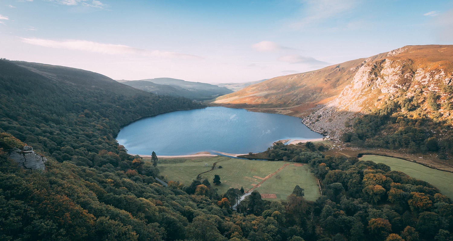 Si vous voulez vivre un instant magique au lever du soleil, c’est simple : prenez votre voiture et rendez vous au Lough Tay. Il y a un point de vue sur la route depuis lequel vous pourrez voir le soleil illuminer petit à petit la vallée et le lac. Un moment que vous pourrez partager avec les quelques moutons qui viennent souvent paître dans les environs.